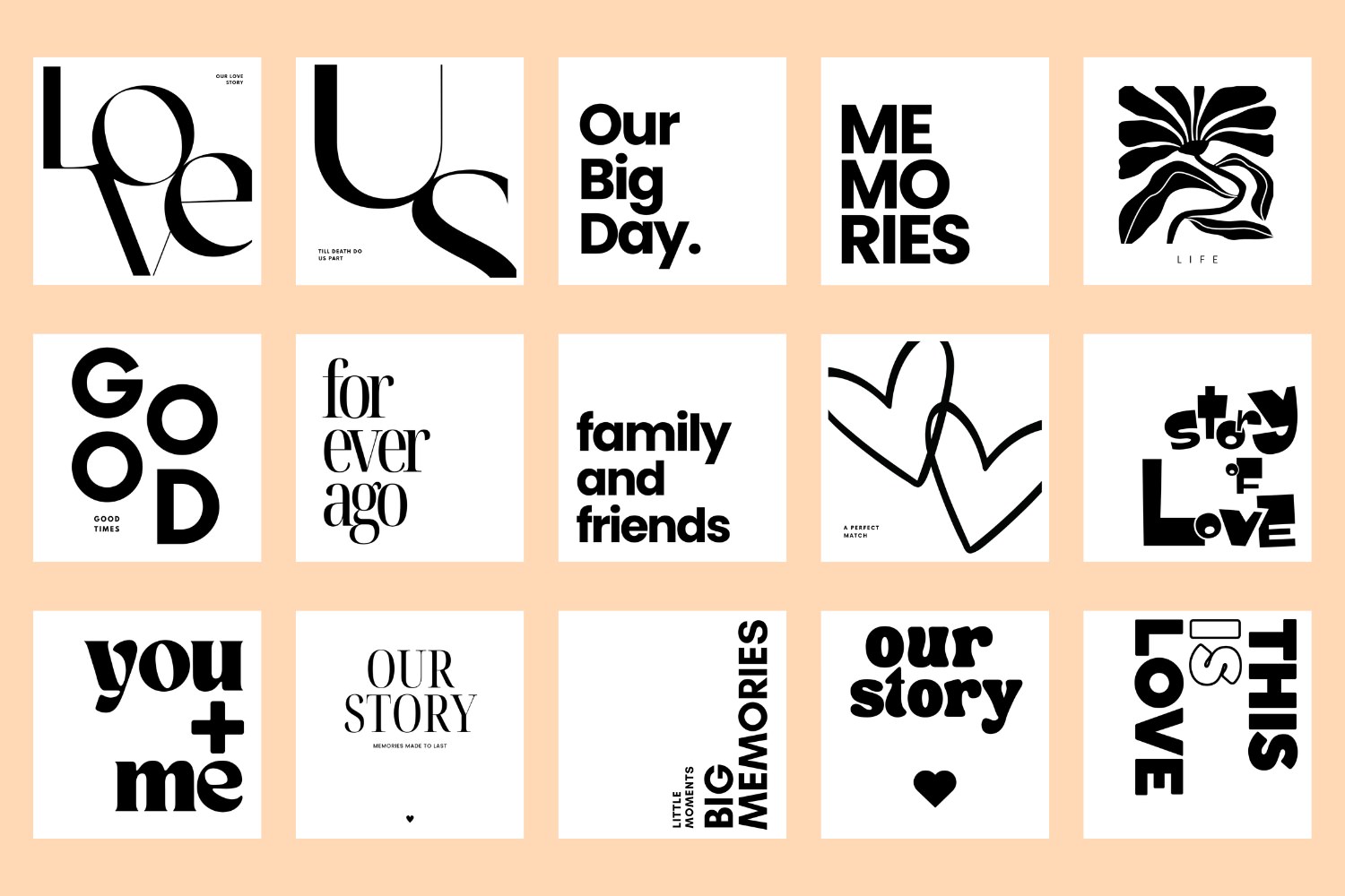 Because the story doesn’t have to wait for page one. Each of our 15 new designs is created to make an instant impact. From modern editorial typography to abstract line work and clean, heartfelt statements. Think “THIS IS LOVE”, “Our Story”, “Big Memories”, and more. These aren’t just decorative details, they’re ready-made openers to your client’s story.